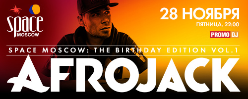 Space Moscow исполняется один год. Свой день рождения самый вместительный клуб города празднует в два этапа. Первая ночь отдана в распоряжение звездам EDM; повелителям танцевальных чартов, гарантировано собирающим аншлаги по всему миру. Хедлайнером праздника объявлен голландец Afrojack, двенадцатый номер в списке ста самых популярных диджеев планеты.