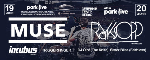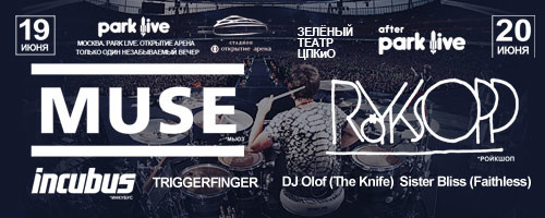 Первые и главные участники уже этого Park Live 2015 года: группа Muse 19 июня на Стадионе «Открытие Арена». Вторыми участниками станет группа, которая приедет в Россию впервые — американцы Incubus. Они отыграют перед Muse полноценный концертный сет.