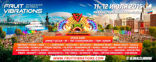 Интересные молодые таланты и уже ставшие легендами артисты порадуют своими сетами. Лайн-ап Fruit Vibrations 2015 — более 30 хедлайнеров танцевальных чартов с многотысячными продажами в iTunes. Увидеть и услышать многих из них в пределах нашей страны — редкость и большая удача. Выступление, пожалуй, самого эпатажного представителя первой десятки диджеев планеты Стива Аоки, можно считать кульминацией второго дня фестиваля.