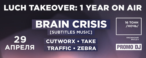 Заручившись поддержкой слушателей, Luch Radioshow выдвигается на просторы ночных танцплощадок, чтобы отметить свой первый день рождения в эфире — все в рамках мероприятия Luch Takeover, которое состоится 29 апреля в стенах клуба 16 Тонн.