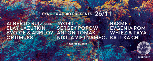 Sync Fx Audio продолжает серию техно вечеринок в клубе Газгольдер. На этот раз лайнап венчает гость из Испании Alberto Ruiz с двухчасовым сетом. Как и в прошлый раз оформление вечеринки будет сюрпризом.