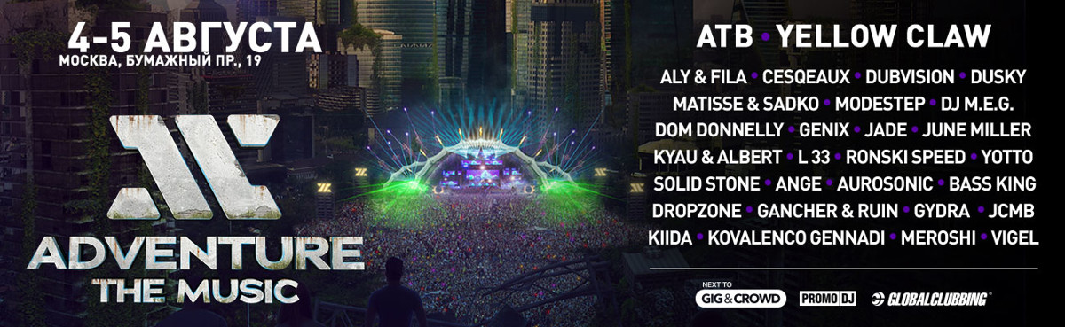 Adventure The Music 2017 — крупнейшее летнее событие электронной музыки в Москве. В прошлом году участие в мероприятии приняло более 100 артистов, среди которых Above & Beyond, ATB, Nick Warren, Jody Wisternoff, Digital Punk, Frontliner, Giuseppe Ottaviani, Jeremy Olander, James Zabiela, Mad Dog, Zoo Brazil, Yotto, Martin Roth, Moonbeam, Spartaque, VNDY VNDY, William Harrison, Bass King, Ange, VEiiLA и многие другие.