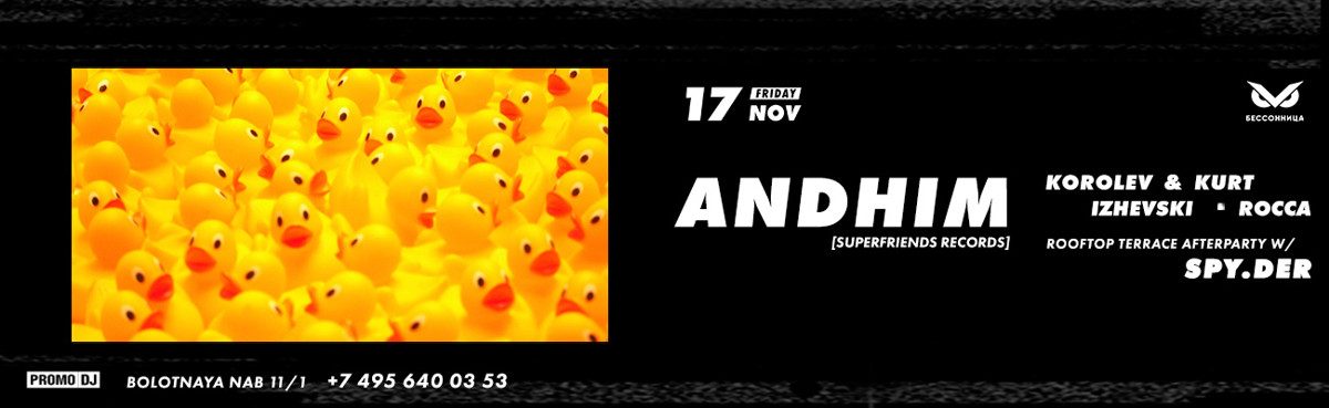 Релизы на Get Physical Music, Monaberry и Terminal M, титул «главных проповедников стиля super-house», головокружительный взлет в национальных чартах и восторги танцующей публики… Всё это — немецкий дуэт Andhim; гости очередной вечеринки клуба Бессонница.