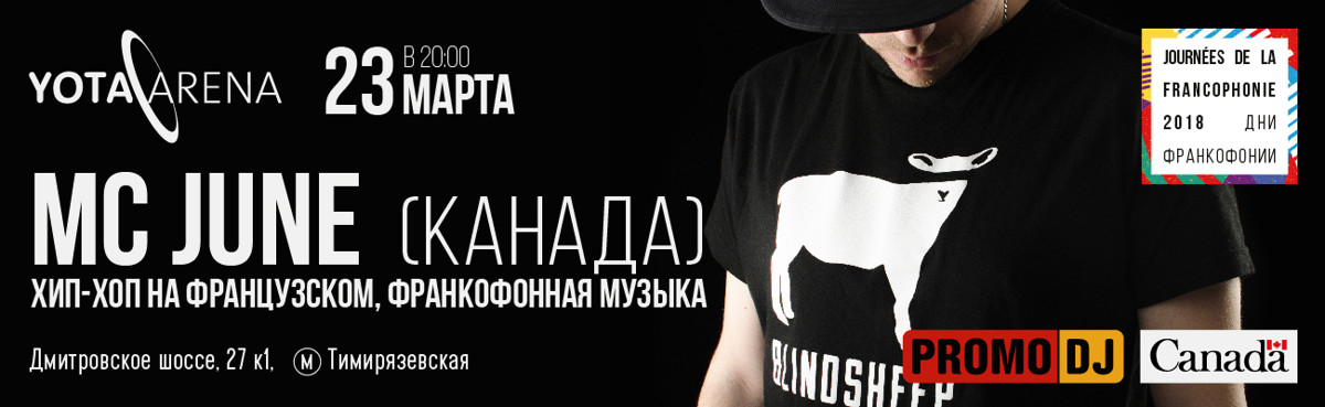 23 марта в рамках ежегодного фестиваля Дни Франкофонии при поддержке посольства Канады в Yota Arena пройдёт выступление MC June, канадского франкоязычного поэта и рэпера, участника Kalmunity Collective. Этот концерт — отличный шанс открыть для себя творчество MC June и оценить его авторское видение современного канадского хип-хопа.