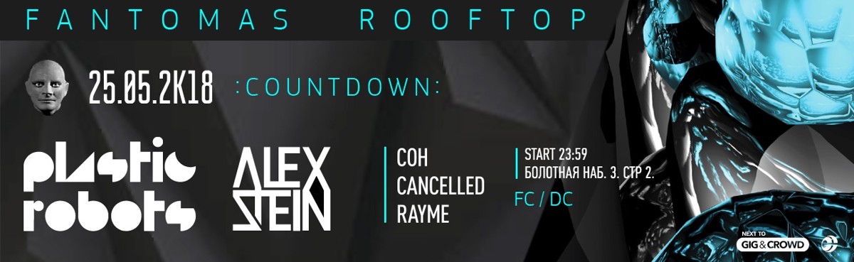 С полуночи и до победных утренних танцев под первые лучи солнца, свои сеты отыграют звезды бразильской техно-сцены Plastic Robots и Alex Stein, а поддержку им окажут отечественные артисты Cancelled, СОН и Rayme. Место под звездами — на крыше Fantomas Rooftop.