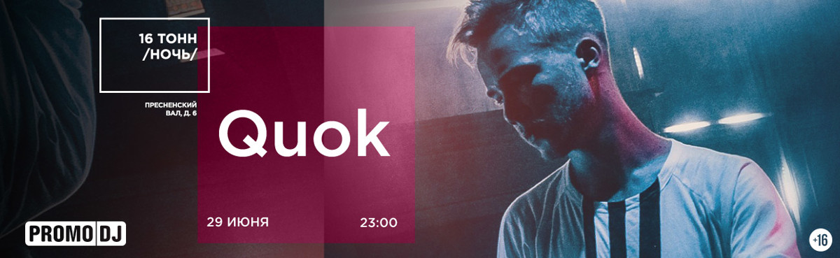Quok — 18-летний электронщик из Праги, резидент фестиваля и лейбла атмосферной электроники Абстрасенция. За пять лет проект успел поработать с несколькими крупными лейблами, выпустить три полноценных лонгплея, неоднократно выступить в России и Европе, сняться для байопика, а также стать одним из основателей творческого музыкального комьюнити VZOR. Quok создает мультижанровую музыку в стилях пост-дабстеп, даунтемпо и эмбиент с добавлением собственного вокала на русском и английском языках.