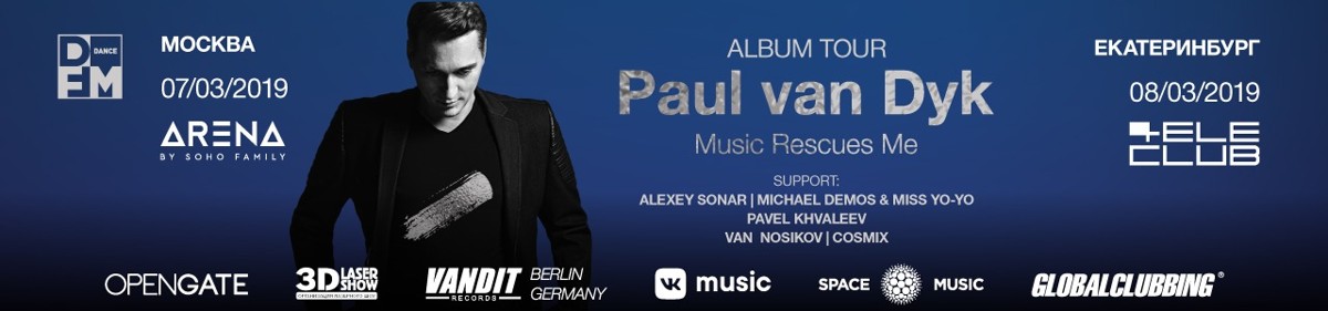 7 марта в московском клубе Arena By Soho Family выступит Пол Ван Дайк и привезет в Россию свой новый альбом Music Rescues Me.