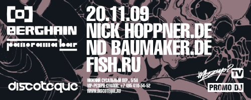 Первые пробные вечеринки проходили еще в «Городе» и даже в «Крыше мира» (поставив в ту ночь первый персональный рекорд заведения по посещаемости). В этот раз к нам приезжают два представителя — со стороны Berghain будет выступать любитель классического техно ND Baumecker, а со стороны Panorama Bar — Ник Хоппнер, тем, кто следит за музыкой внимательно, быть может известен по проекту MyMy. Естественно, в связи с этой вечеринкой возникает интерес — что такое в этом берлинском клубе, на который равняется чуть ли не половина мировых?!