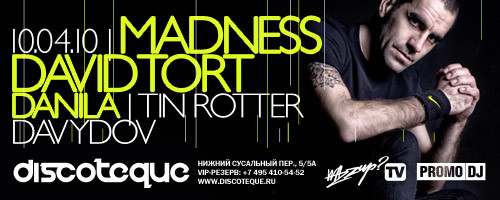 10 апреля в клубе Discoteque состоится очередная громкая премьера. Madness — вечеринка знаменитого Дэвида Торта. Впервые один из самых актуальных европейских диджеев приедет в Discoteque в статусе постоянного резидента клуба.