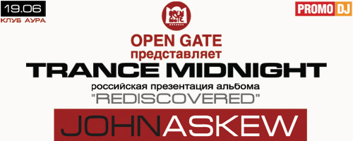 Интересно, что днем ранее, 18 июня, Джон Аскью выступит в другом российском мегаполисе, Казани, на фестивале Open Gate Presents. Будем надеяться, что с помощью мероприятий под брендом Trance Midnight лейблу Open Gate удастся форсировать появление среди мейнстрима избранной музыкальной продукции — подлинных, неповторимых и лучших образцов такого полюбившегося нам жанра, как транс.