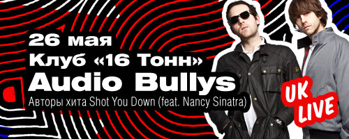 Новое лайв-шоу от скромных парней, которые в какой-то момент стали популярнее и Фэтбой Слима, и Groove Armada, и других собратьев по жанру: от хип-хопа и фанка до хулиганского хауса и драм-н-бэйса — Audio Bullys в Москве только 26 мая в клубе «16 Тонн»;