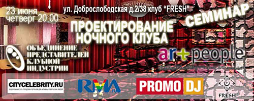 Некоммерческое Партнерство «Объединение представителей клубной индустрии» и компания «Арт Пипл Групп» представляют семинар «Проектирование ночного клуба».