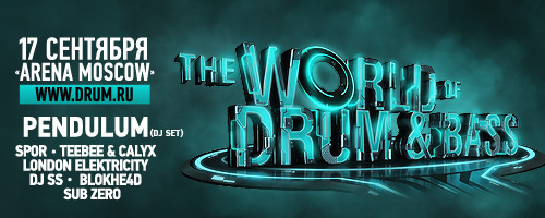 Один из самых масштабных фестивалей на мировой танцевальной сцене с одиннадцатилетней историей проведения более, чем в 25 странах мира! Великие имена жанра, уникальные постановки, гигантские декорации, десятки лазерных установок, сотни световых приборов, тысячи поднятых рук. Все это — The World Of Drum & Bass, самый известный и успешный d’n’b-рейв в мире!