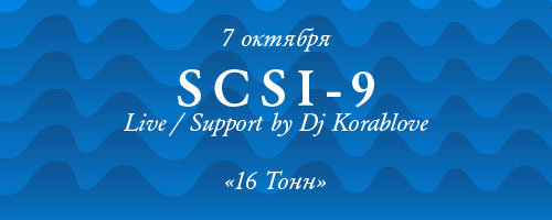 На одной сцене со SCSI-9 специальный гость, мастер шуршащего нежного грува по имени Korablove со специальным сетом из четвертого измерения. В общем, все мы ждем традиционной осенней вечеринки от Кубикова сотоварищи с невероятным звуком, проникающим в самые дальние уголки мозга и заставляющим нейроны танцевать.