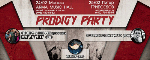 Конец февраля порадует поклонников Prodigy и всех любителей ломанных ритмов серией тематических вечеринок в честь одинадцатилетия портала TheProdigy.ru — самого большого фан-сообщества группы в мире.