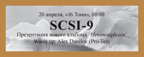 SCSI-9 — это не просто техно-дуэт, а настоящие герои российской электроники. Антон Кубиков и Максим Милютенко давно носят статус культовых персон мировой электронной сцены. Новые романтики техно, исследователи жанров и передовых технологий, их релизы с удовольствием издавали такие техно-глыбы как Traum/Trapez, Kompakt, Salo, Freizeitglauben, Morris Audio, Highgrade, Force Tracks, Tyrant. Настало время пятого долгоиграющего альбома, в котором таланты дуэта снова сверкают всеми гранями кристально чистого саунда. Альбом Metamorphosis — это новая работа с пространством и временем, эклектичное полотно, отправляющее нас в путешествие не по формалистичному электронному коридору, а по ландшафтам человеческих переживаний, воспоминаний и чаяний.