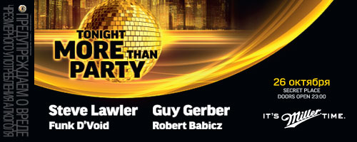 Следующий герой ночи израильтянин Гай Гербер (Guy Gerber), очень быстро завоевавший внимание лучших артистов планеты и получивший поддержку таких мастодонтов как Джон Дигвид и Свэн Фэт, представит нашему вниманию впервые в России лайв-версию своего выступления в стиле спэйс-диско.