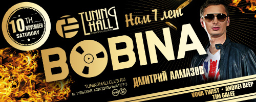 Он единственный российский диджей, собравший собственный концерт — «Bobina: Extended» в Москве. Bobina — автор Гимна Казантипа Z:17, победитель международной премии Ibiza DJ Awards 2009 в категории «Лучший диджей танцевальной нации года», победитель Russian Dance Music Awards в номинации «Лучший Российский DJ 2007 и 2008».