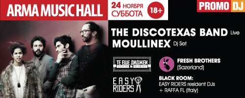 Discotexas Band — это три наиболее популярных артиста португальского лейбла Discotexas: Moullinex, Xinobi и вокалистка Da Chick, объединившиеся в экспериментальную хулиганскую группу, исполняющую лучшие треки лейбла (как свои, так и коллег по цеху). Создатель группы, Moullinex — португальский продюсер и диджей, взявший себе псевдоним в честь знаменитой французской компании производящей бытовую технику.