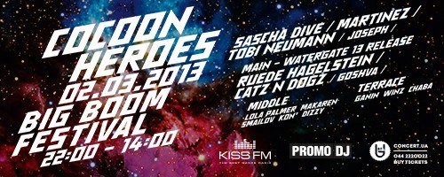 «Heroes come and go but legends are forever»... Музыкальные герои легендарной франкфуртской империи Cocoon, во главе которой стоит неподражаемый Свен Фэт (Sven Väth), не уходят, а почетно продолжают свой эпохальный ход серией ивентов «Cocoon Heroes», оставивших магический след в Японии, Штатах, Канаде и многих странах Европы. 2 марта в BBR состоится событие, имеющее все шансы войти в историю андеграунд-культуры Киева. Впервые столичный клуб, расширившись до 700 квадртов новой площади, соберет передовых европейских музыкантов от Cocoon’a и Watergat’a, и откроет первую страницу масштабных Big Boom фестивалей. Cocoon принадлежит к числу лидирующих ивент агентств Германии и считается признанным во всем мире брендом, с несколькими профильными ответвлениями: Cocoon Artist Booking, Cocoon Recordings и Cocoon Events. Под покровительством мирового гиганта Cocoon’а, стартовавшего в 2000 году, был также открыт известный во всей Европе — франкфуртский клуб. Тема «героев» зародились на Ибице, в 2011 году и на следующий год была облачена в «магическую форму».