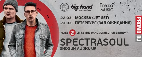 На данный момент Spectrasoul являются лакомым куском для британских и европейских промоутеров, они играют на лучших площадках и являются резидентами лейбла Shogun Audio, где летом прошлого года вышел их дебютный альбом. В свой мини тур по России Spectrasoul обещают привезти огромное количество свежих треков и ремиксов, которые они сделали после выхода LP!