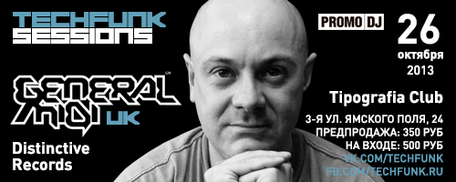 General Midi (Distinctive Records, UK) — легендарный брейкс музыкант и диджей. Автор двух сольных альбомов и компиляции Y4K на Distinctive. А также релизов на таких лейблах как Hope и Kilowatt. Благодаря своему неизменно отличному вкусу и мастерству сведения, стал завсегдатаем многих известных клубов по всему миру. Сейчас является ведущим преподавателем по звукорежиссуре в лучшей английской школе PointBlank.
