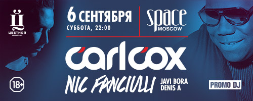 После долгого перерыва в шесть лет легенда «белого острова» Карл Кокс снова посетит Москву. И не один, а с Ником Фанчулли, другим талантливым британцем, вместе с которым они отыграли безупречный back2back сет на закрытии прошлого сезона в Space Ibiza. Свое видение андеграундного хауса и настоящего техно этой ночью также представит резидент испанского клуба Javi Bora.