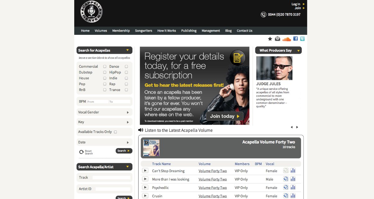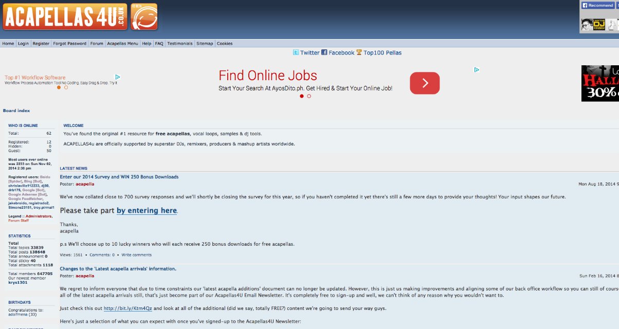 Один из самых долгосрочных проектов сегмента представляет большую коллекцию вокальных партий хитов Top 40 и других популярных песен. Стоит признать, форум реализован далеко не лучшим образом, поисковый алгоритм тоже далек от идеального. Но это то место, где можно заполучить горячие неофициальные акапеллы. Конечно, поскольку вокальные треки не санкционированы артистами и издателями, выпустить такой материал и подзаработать на нем не удастся.