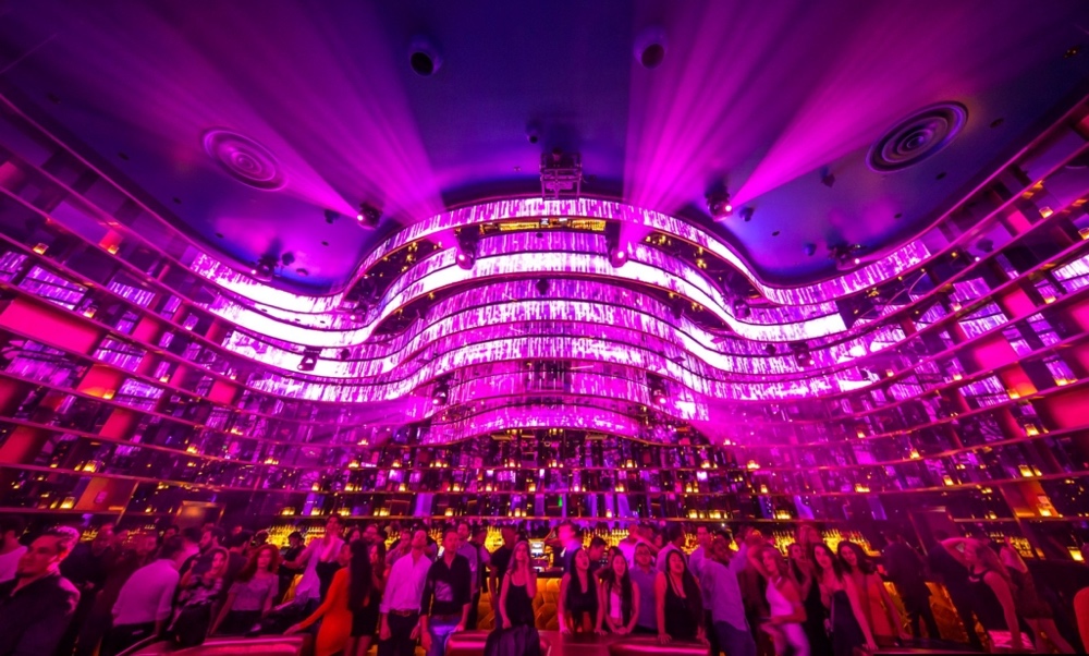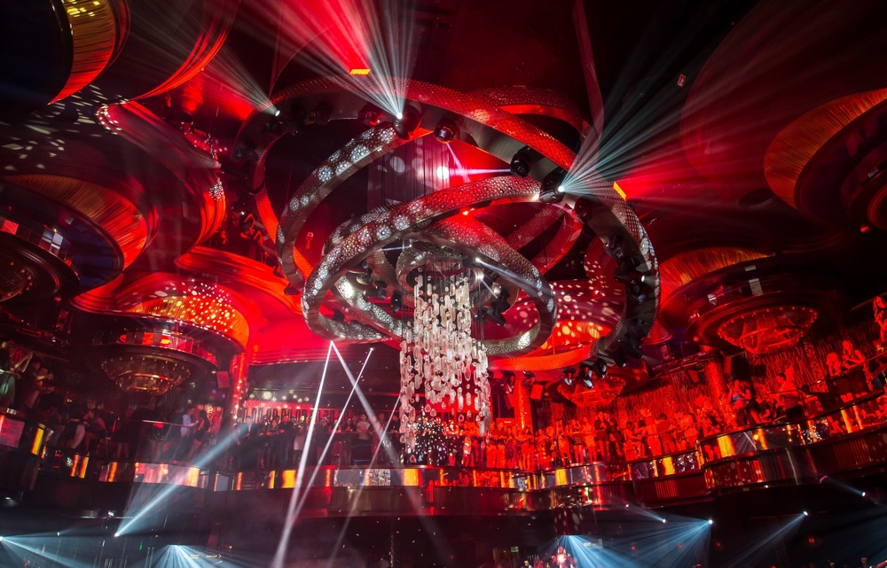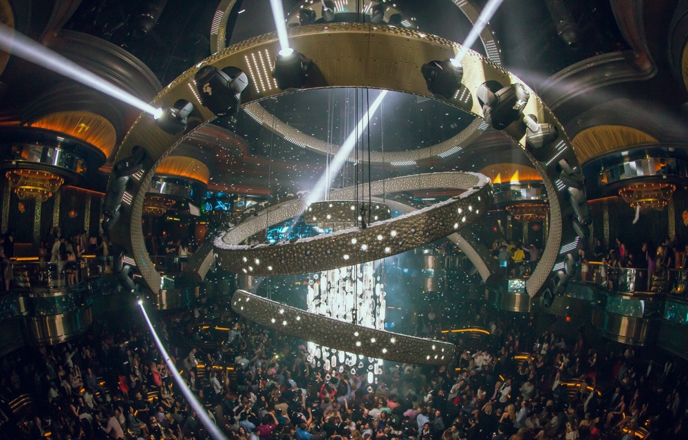 Центральная зона основного клубного зала состоит из восьми концентрических окружностей, нашпигованных шоу-элементами вроде светодиодных композиций, видеоэкранов и освещения, синхронизированная хореография которых не утихает всю ночь