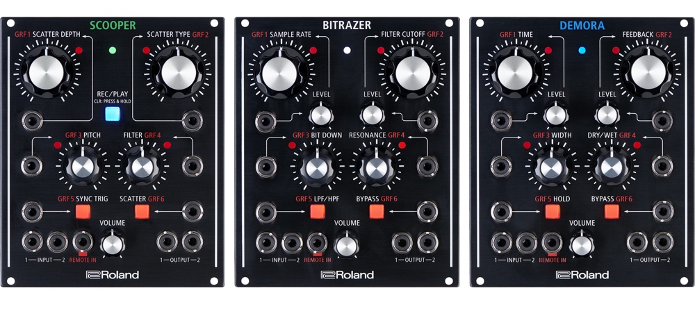 Roland представили и новую линейку модулей эффектов (тоже Eurorack), в которую вошли крашер Bitrazer, дилэй Demora, модуль под названием Scooper и дисторшн Torcido. Каждый обойдется в 299 долларов (в районе 16 тысяч рублей), а отгрузки начнутся в июне или июле.