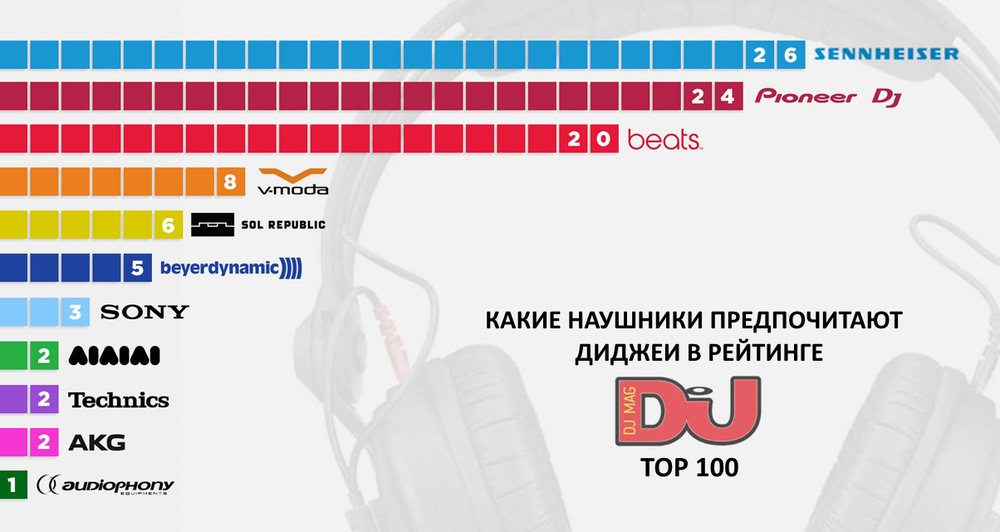 Наши коллеги из Digital DJ Tips решили объединить столь горячие темы (до сих пор самые лучшие наушники и самый влиятельный рейтинг диджеев еще не изобрели) в одну интересную инфографику.