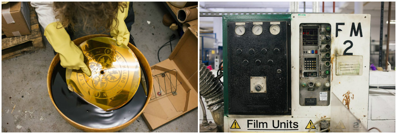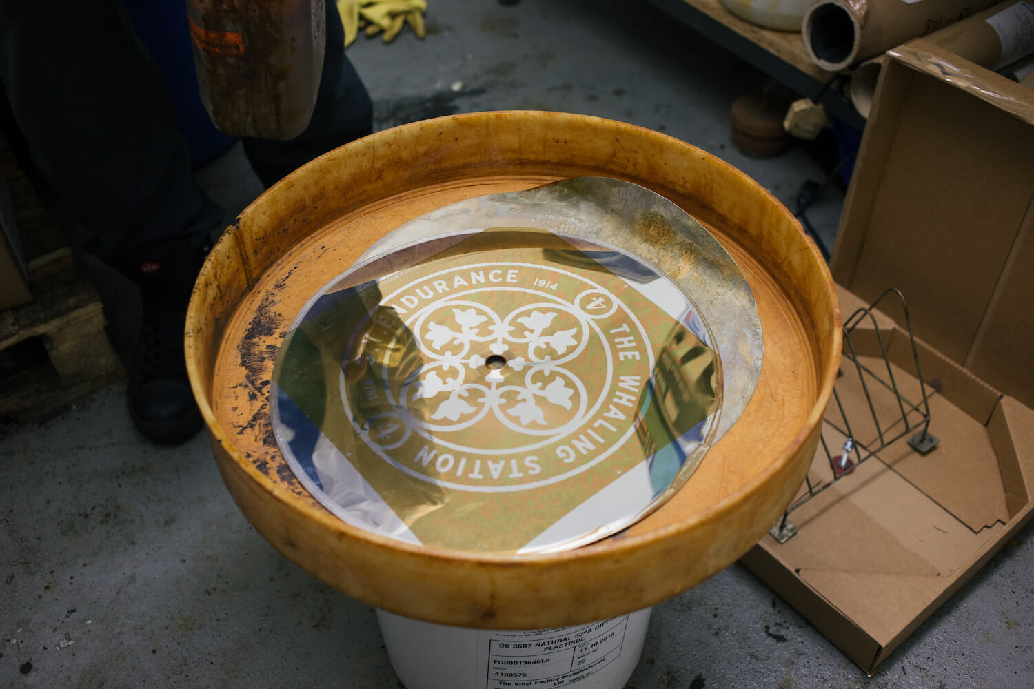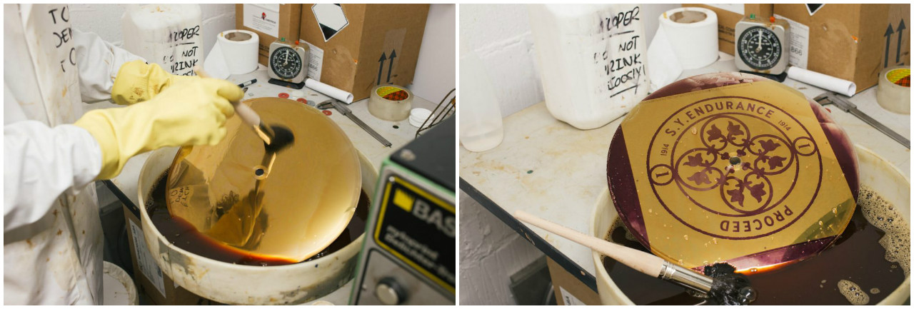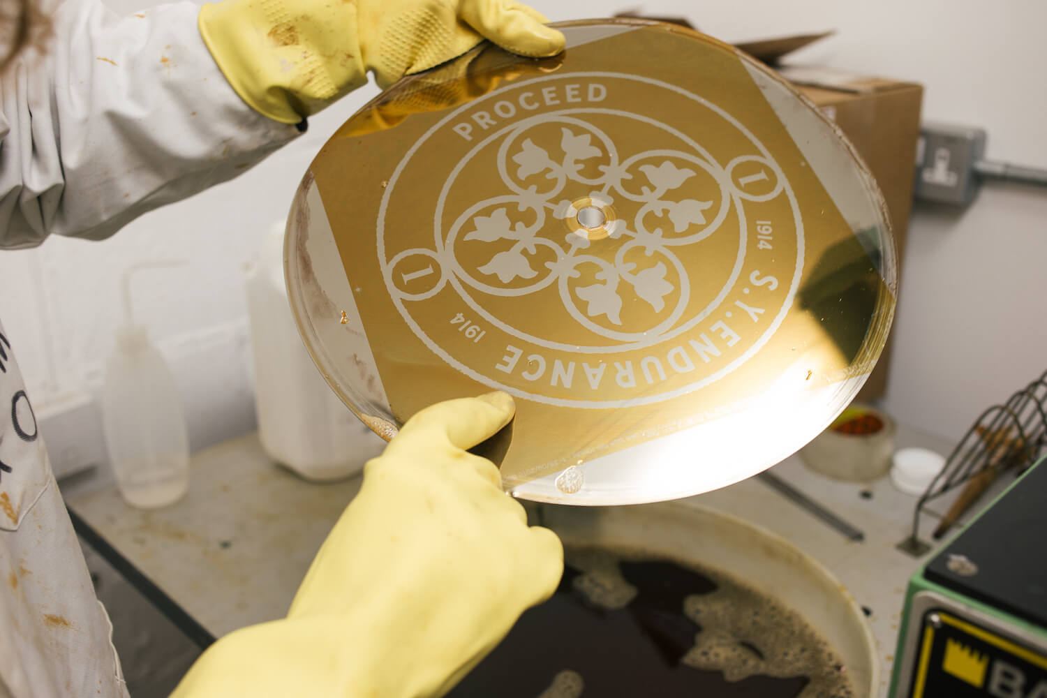 Тем не менее, у винтажной химической гравировки есть неподдельный шарм — это многоэтапная и требовательная процедура сродни мастерству проявки и печати фотографий. Гравировальный элемент наносится на металлический диск с помощью специальных коррозионных химических реакций, затем его впечатывают в винил, который получается односторонним.