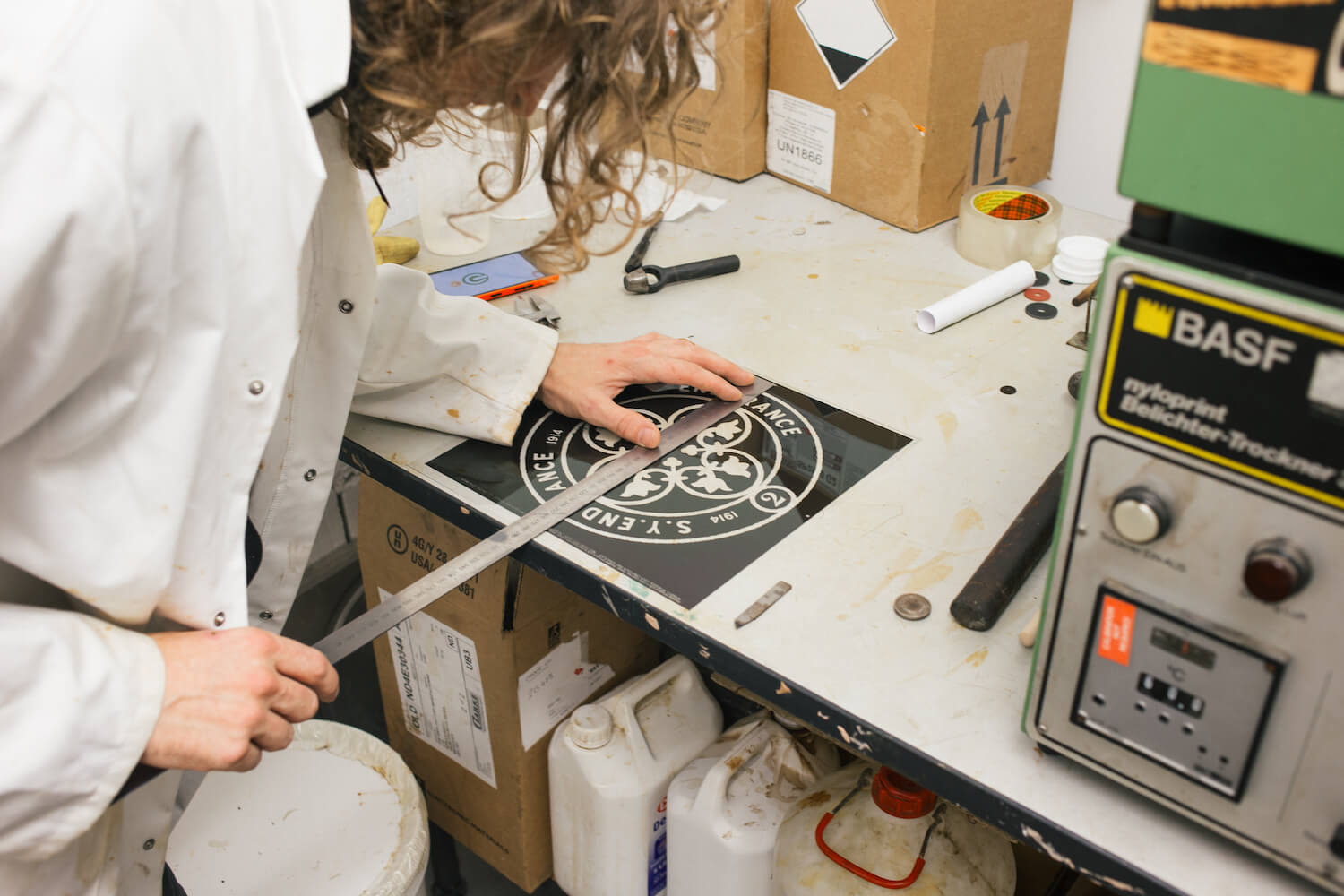 По сложившейся традиции, химическая гравировка обычно наносится на обратную, не покрытую звуковыми дорожками сторону. Лондонское ателье The Vinyl Factory — одно из считанных мест, где для выпуска специально оформленного винила по-прежнему используют эту технологию.