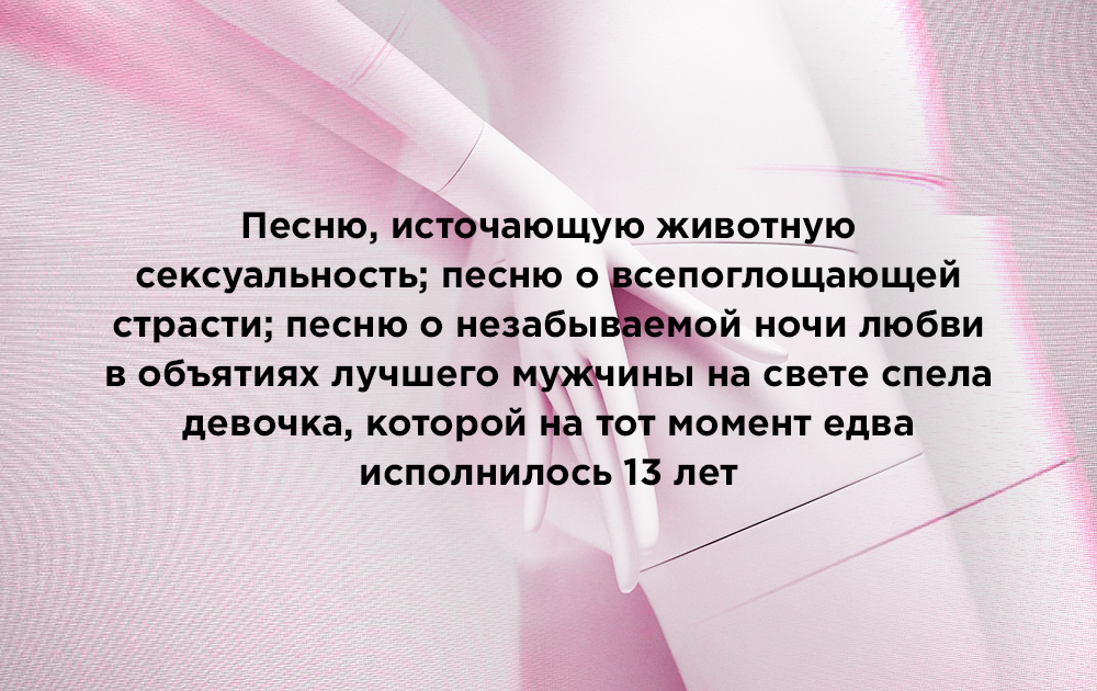 В чем причина? Почему 13-летняя девочка поет песню о ночи бурного секса, а 283 миллиона слушателей находят исполнение убедительным? И более того активно ищут музыку по запросу «похоже на Felix Jaehn». Менеджеры мейджор-лейблов перешли с кокаина на педофилию?