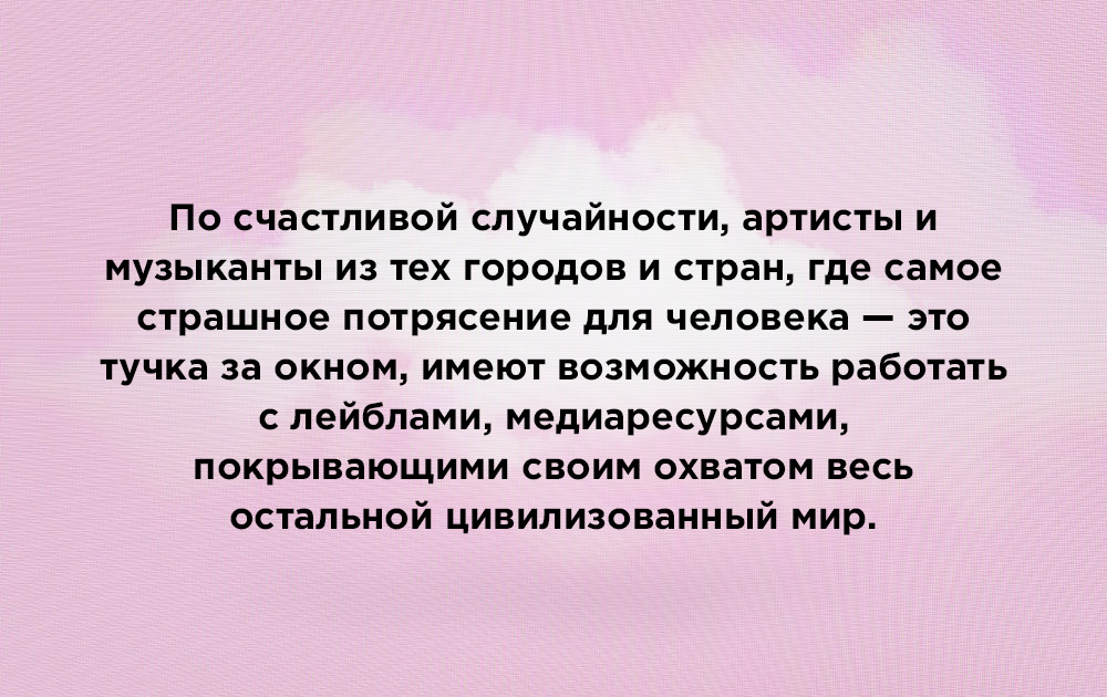 И когда условный Феликс Яен или другие герои тропического хауса доходят до чартов, например, Украины и России, где большей части населения надо пахать полжизни, чтобы эти самые тропики хоть раз в жизни увидеть, — происходит легкая нестыковка.