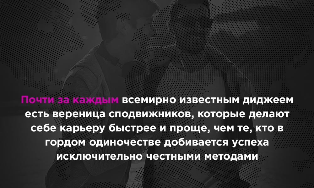 Зачастую смотря на успешных диджеев и продюсеров (если отбросить всю лицемерную шелуху из пресс-текстов и проплаченных интервью), вы столкнетесь с одной и той же стандартной историей успеха — старым-добрым кумовством. Протеже, резиденты, друзья, братья.