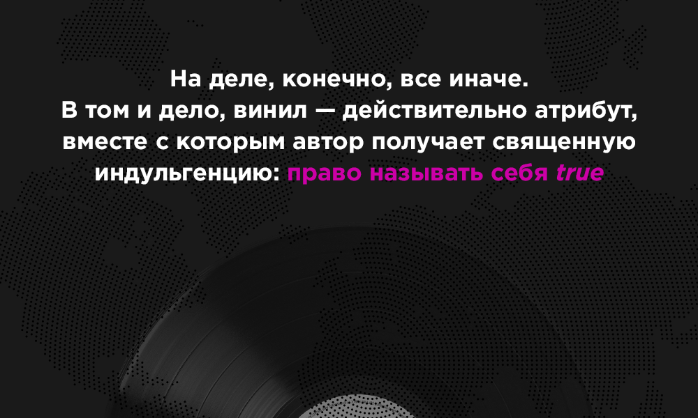 Мечта практически любого продюсера — релиз на виниле. Обязательный атрибут, который подтверждает попадание артиста в определенную лигу. Виниломаны даже придумали красивую легенду: на пластинках выпускают только качественную музыку — мол, это в цифре можно релизить любой мусор, Beatport резиновый, пусть там где-нибудь себе валяется. Другое дело — винил: обложка, специальный мастеринг, печать тиража, дистрибуция, репрессы или лимитированное издание. Столько усилий и вложений, какой дурак будет с этим заморачиваться ради проходного трека? Ага, на пластинках выпускают исключительно шедевры.