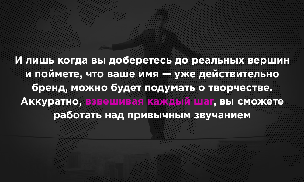 Это может быть скучно, странно. Вы можете возненавидеть себя, вступить в конфликт с собственным творческим эго, впасть в депрессию и даже стыдиться того, что ваши треки звучат как один. Но помните, что прямо сейчас за спиной полон решимости конкурент. А следом по вашей спине пройдет еще армия таких же — готовых на все ради славы, денег или признания.