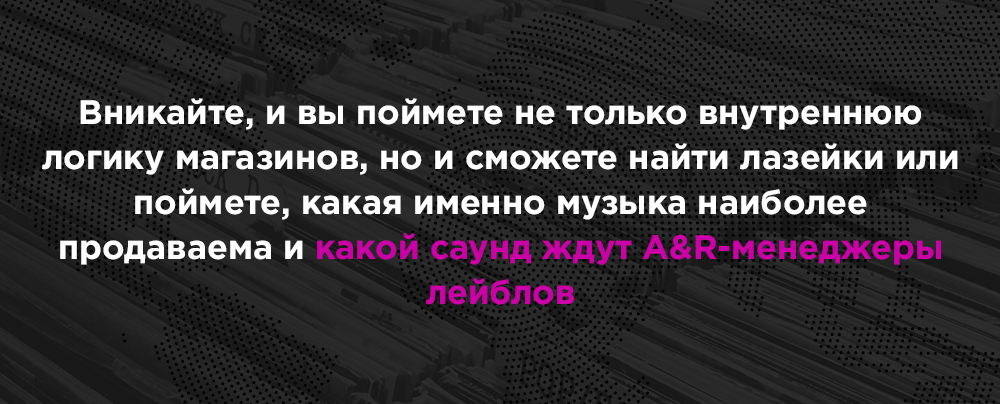 Если вы пришли на электронную сцену всерьез и надолго, стоит изучить внутреннее устройство онлайн-магазинов. Об этом не прочитать статей. Тонкости работы магазинов, их внутренние секреты должны быть известны только лейблам. Задавайте больше вопросов издателям.