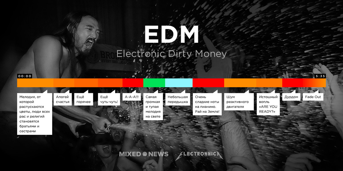 Забавные эскизы облетели сначала блоги родной Оттавы, затем были замечены остальным миром и даже переведены на русский. В работах Аткинсон обошел стороной электронную музыку: в его коллекции есть блюграсс, джаз, хип-хоп, кантри, а вот техно или хауса не оказалось, поэтому мы решили восполнить пробел и нарисовали собственные схемы.