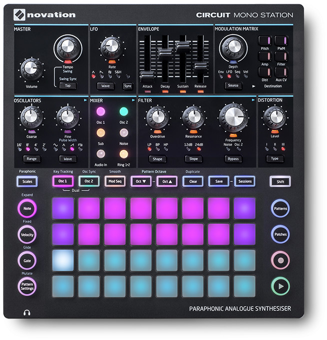 Как можно догадаться уже по названию, Circuit Mono Station — это гибридное обновление доступного фирменного грувбокса Circuit. Главное отличие от предшественника заключается в отказе от использованных в предшественнике цифровых синтезаторов и библиотеки семплов в пользу парафонического (играет две ноты сразу — прим.) аналогового саунд-движка, построенного на базе хорошо известного Bass Station.