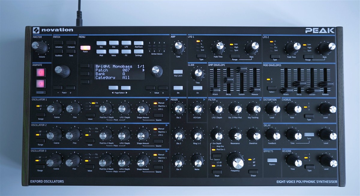 Peak — это восьмиголосный настольный модуль для полифонического синтеза. Его саунд-движок построен на трёх цифровых осцилляторах высокого разрешения типа Oxford, авторской разработке влиятельного синт-инженера Криса Хаггитта, в чьём портфолио значатся как легендарные Wasp и OSCar, так и несколько классических синтезаторов Novation, включая SuperNova и Bass Station. Peak не является полностью аналоговым — выполненный по совмещенной архитектуре инструмент использует 17-рядную таблицу семплированных звуков (wavetables) и возможности линейного FM-синтеза.