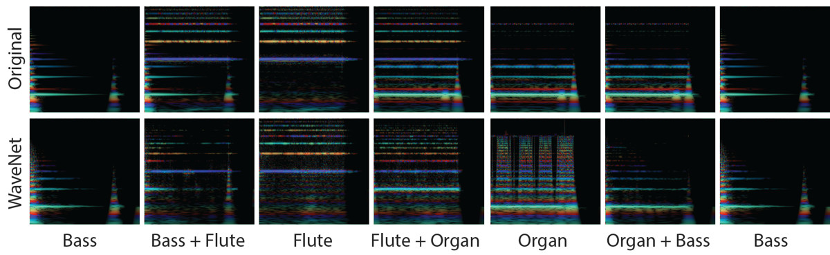 В основе NSynth лежит массивная база данных со звуками. Исследователи накопили широкий диапазон нот, сыгранных на тысяче разных инструментов, а затем «скормили» их нейросети. Анализируя ноты, нейросети Google Brain и Deepmind выучили звуковые характеристики каждого инструмента в отдельности, и присвоили им математические «векторы». Используя эти векторы, машина может не просто сымитировать игру условного клавикорда или саксофона, но и создать уникальный саунд, сочетающий черты звука обоих инструментов.