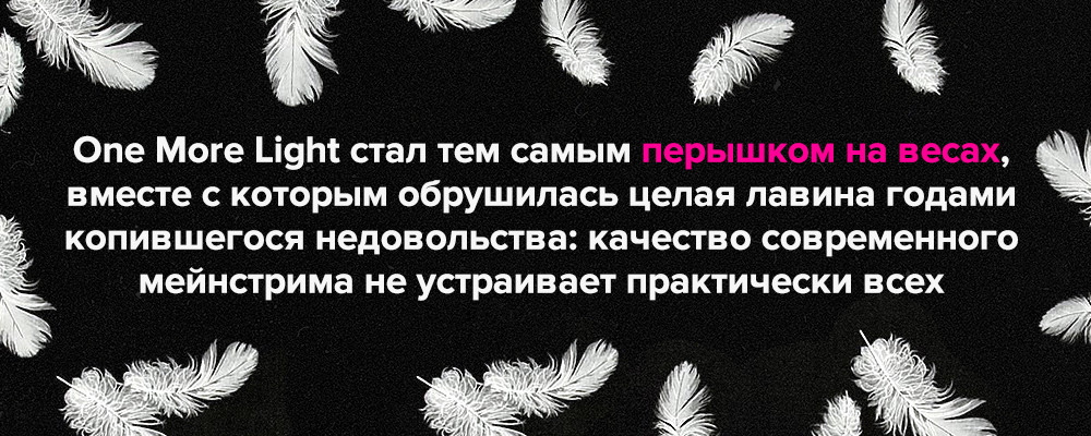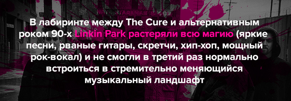 А потому признаемся честно: для большинства из тех, кто в самом начале нулевых души не чаял в героях MTV — ню-метал группе Linkin Park — их музыка перестала существовать ещё в 2007-м, с выходом альбома Minutes To Midnight. После сверхуспешных Hybrid Theory (11 миллионов проданных копий) и Meteora (7 миллионов) группа надолго увязла в поисках нового саунда.