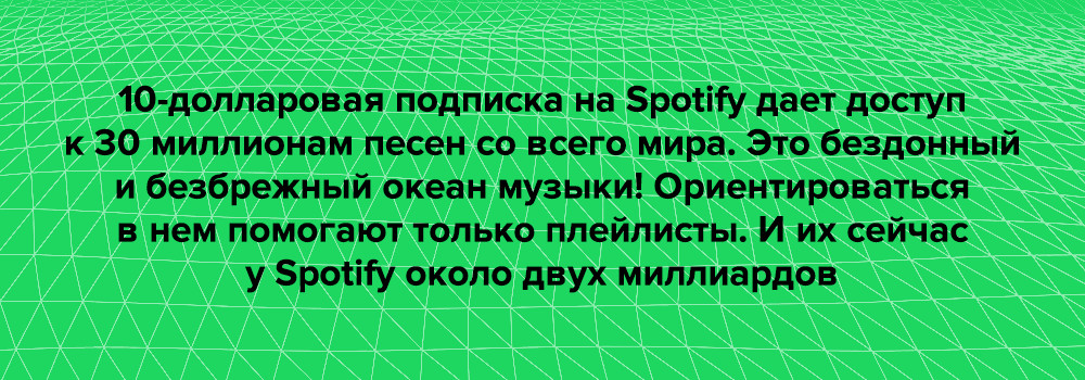 Afternoon Acoustic и Peaceful Piano — одни из самых популярных плейлистов на Spotify. Общее число подписчиков — 6 миллионов. Главная скрытая сила плейлистов этой платформы — это уход от жесткой жанровой категоризации музыки в силу концепции «под настроение».