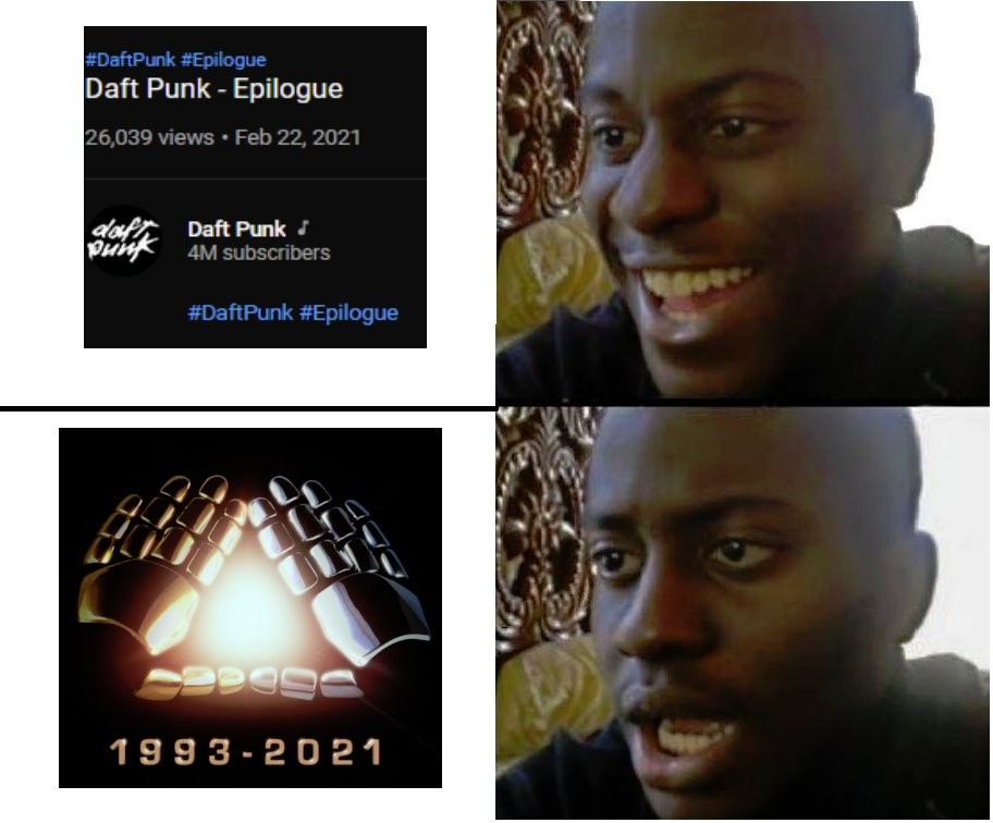 P. S. Кстати, только что появилась новость, что дебютный лонгплей Homework и концертный альбом Alive 1997 получат в этом месяце по виниловому переизданию (ну и заодно снова окажутся в чартах, тут уж к гадалке не ходи). И еще новость: как всегда и бывает в подобных случаях, цифровые продажи альбомов Daft Punk взлетели на 2 650%, продажи треков — на 1 335%, стримы — на 500%. Распады и завершения карьеры — это почти всегда отличный бизнес. А чтобы сделать эту публикацию чуть более полезной, оставляем ссылку на VK, где можно посмотреть документалку Daft Punk Unchained (2015) с озвучкой на русском языке — если еще не видели, сейчас самое время.