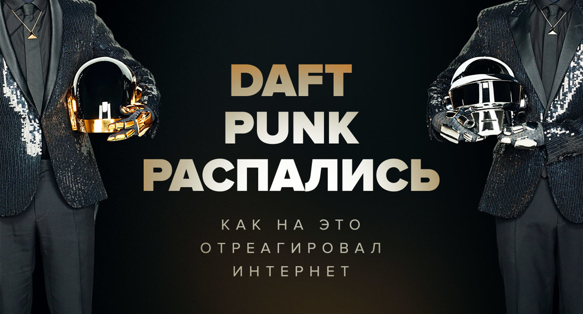 Официально: проекта Daft Punk больше не существует. Эта весть появилась как гром среди ясного неба — даже несмотря на то, что за последние годы участники дуэта нечасто становились героями новостей, редко выходили в свет, не выпускали новых релизов и не устраивали гастролей.