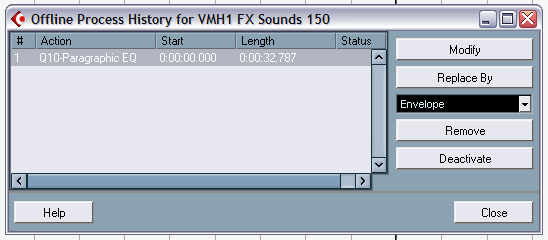 В последствии, если вы захотите отменить или изменить действие наложенной обработки, нужно будет обратиться все к тому же контекстному меню, выпадающему по правому клику, к пунтку Audio->Offline Process History.