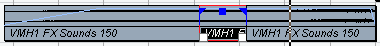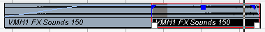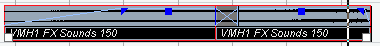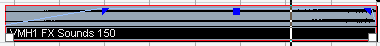 Если же мы хотим поменять громкость конкретного аудио-фрагмента (например, на одной дорожке у нас будет несколько разных FX-семплов), мы можем потянуть вверх или вниз синий маркер, расположенный посередине фрагмента в верхней его части:
