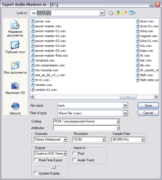 Итак, необходимые настройки заданы, нажимаем Save, и после нескольких минут обсчета (в зависимости от производительности Вашей машины) наслаждаемся своим первым треком в Cubase SX!